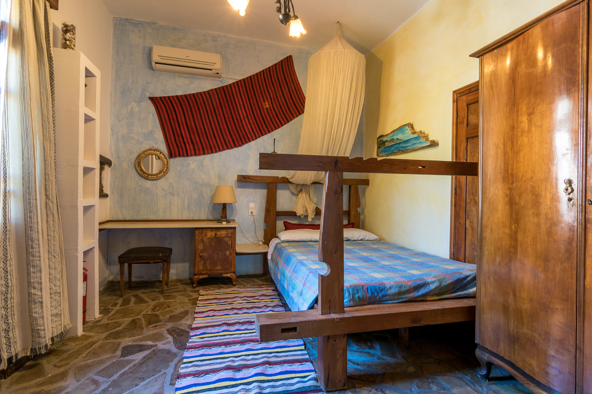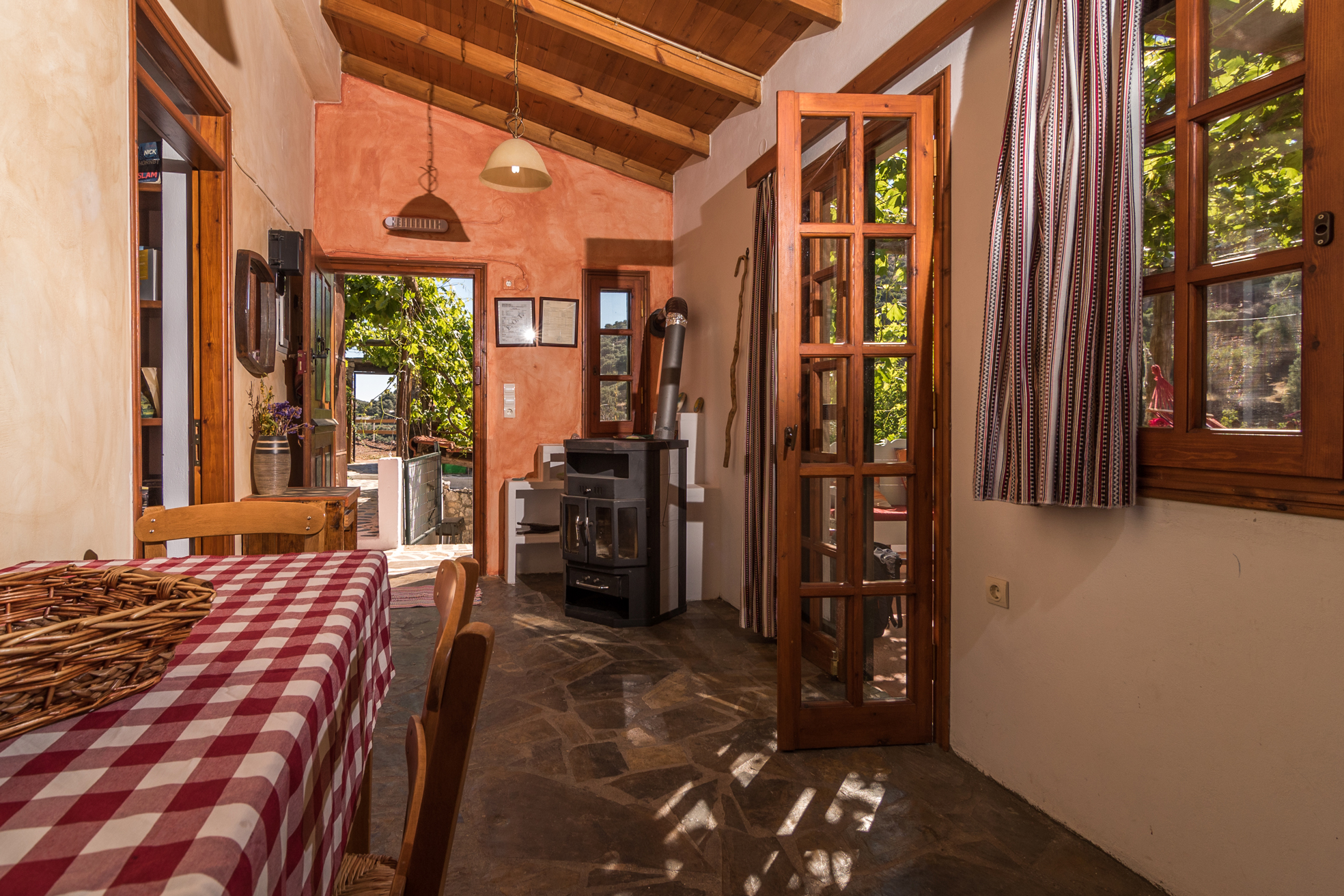 The “anoi” at spitia’ sleeps up to 7 persons if necessary. It has a separate bedroom and a second larger space that functions as a living room during the day and bedroom at night. A fully equipped kitchen, a dinning area and a spacious bathroom with a washing machine make up the rest of the house.